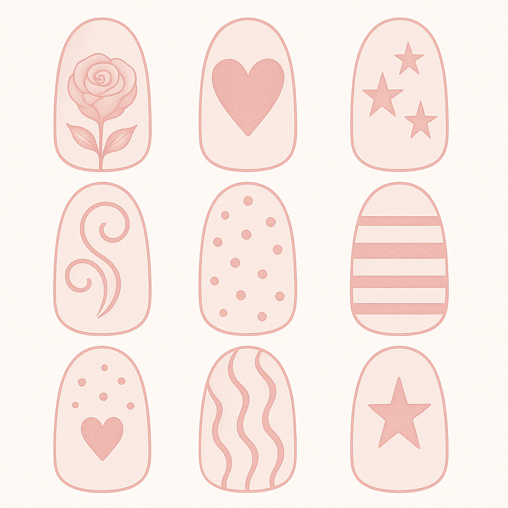 For those who love a subtle touch of art, simple nail designs such as hearts, stars, stripes, dots, or swirls are available for $5 per nail. No advance notice is needed — these smaller accents can be added on the spot during your appointment. Whether you’re after something playful or refined, each detail is customized to match your style.